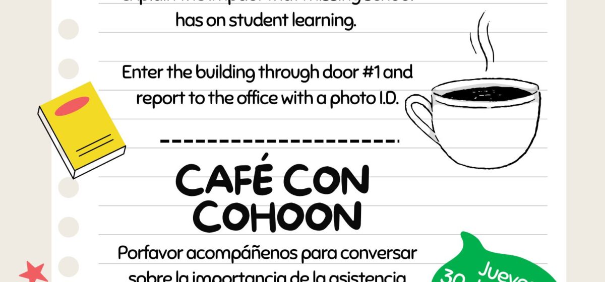 ¡Acompáñenos el jueves 30 de octubre para “Café con Sra. Cohoon”!