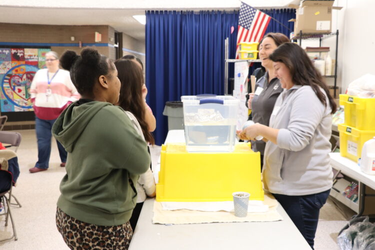 Los ingenieros de Engineering Enterprises, Inc. de Sugar Grove, Illinois, vinieron el jueves, 26 de febrero para trabajar con los estudiantes de quinto grado de Krug. Esta fue la tercera vez que vinieron a trabajar con los estudiantes para el desafío de este año. Los estudiantes trabajaron en sus planos de diseño y construyeron sus barcos el último día. Luego tuvieron la oportunidad de añadir peso a cada barco para ver cuál aguantaba más peso.