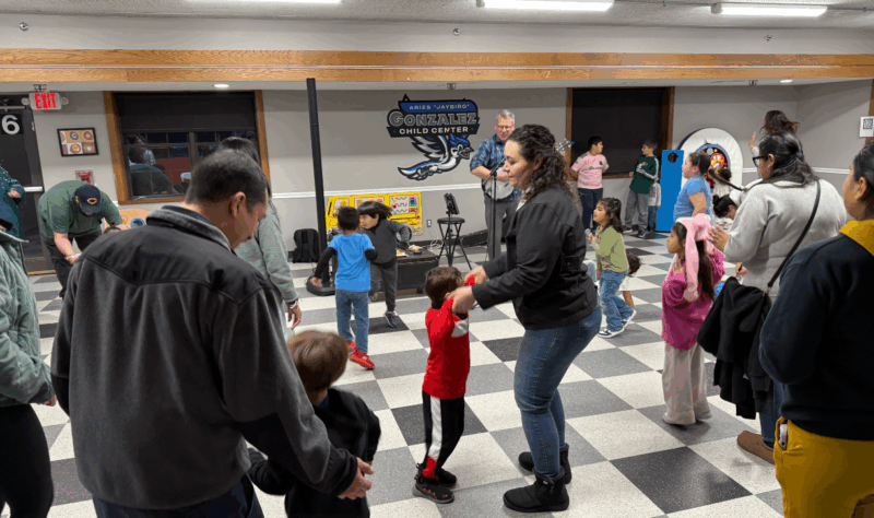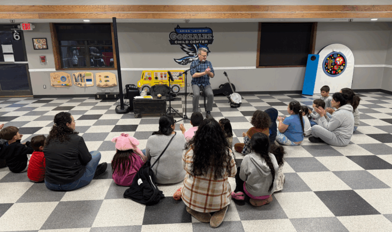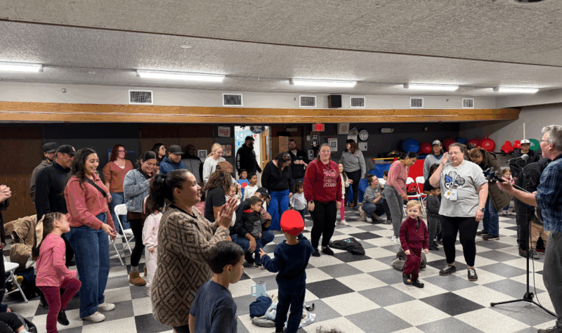 Estudiantes y familias aplaudieron, bailaron y cantaron mientras Jim los guiaba a través sus canciones interactivas. ¡El salón se llenó de risas, sonrisas y mucha energía!